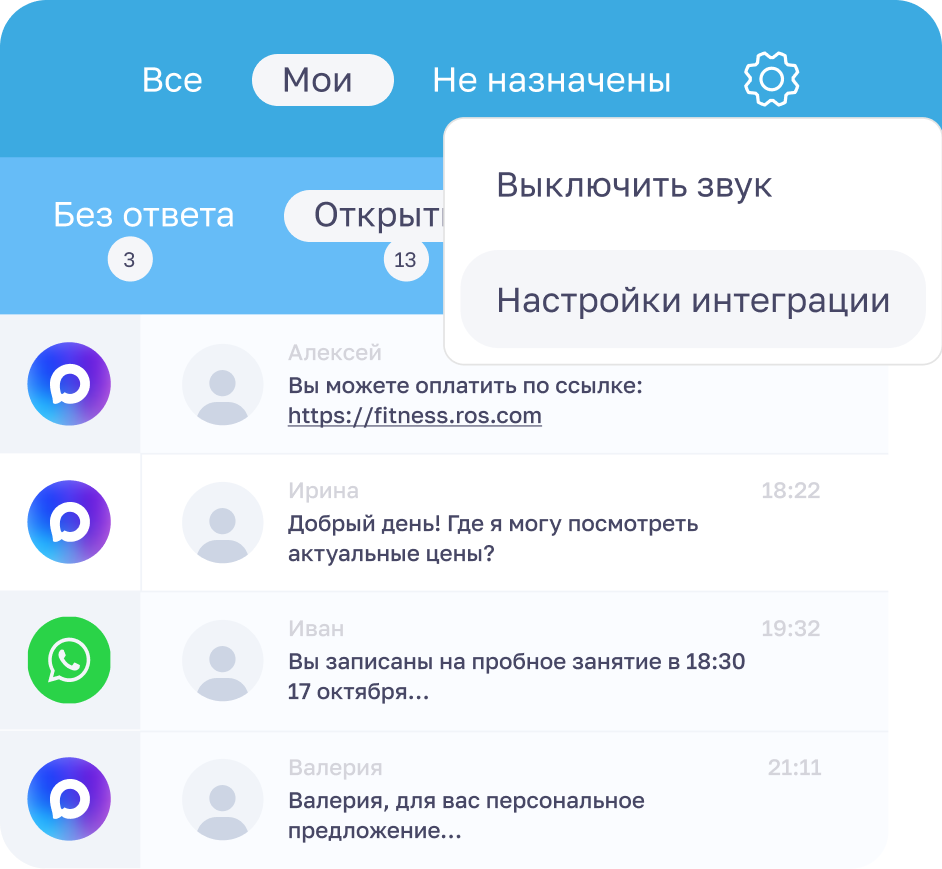 Никаких переключений между чатами, никаких потерянных диалогов и клиентов